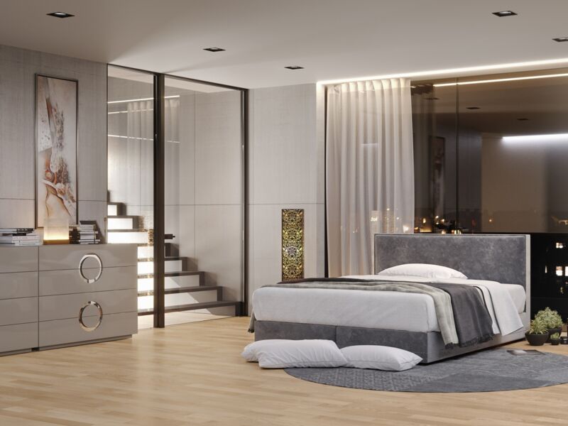Ausstellungsbetten in Boxspring- Stoff- und Holzversion, Matratzen, Topper, Lattenroste und Innenraum Leuchten jetzt im Sale!